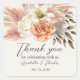 Obrigado seus hóspedes com este elegante adesivo quadrado com florais de cor aquosa macia em cor de pêssego, creme e tons de borda poeirenta. O delicado design boho adiciona charme para favorecer bolsas, envelopes e caixas — perfeito para queda rústica ou casamentos ao ar livre. Personalize com seus nomes e data do casamento.