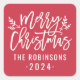 Adesivo Quadrado Personalizado de Natal Vermelho com Script Moderno