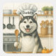 Adesivo Quadrado Personalized Name Funny Siberian Husky Dog Chef