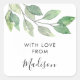 This sticker is decorated with watercolor greenery and stylish script typography. Easily customizable. Original Watercolor © Michele Davies.