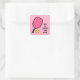 Adesivos de presente divertidos de pickleball, etiquetas de favor de festa ou selos de envelope com remo rosa quente e bola amarela. Para personalizar, edite o texto.