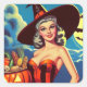 Adesivo Quadrado Pin-up da Bruxa do Retrô halloween