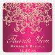 Uma bela fúcsia e festa dourada favorecem obrigado você etiquetas e adesivos com um sari ornamental inspirado por um índio exótico como um padrão de medalhão com um design floral e de lótus. Este elegante e belo adesivo ao estilo indiano é perfeito para qualquer ocasião formal ou especial, incluindo casamentos, noivados, festas de aniversário e aniversário ou qualquer elegante caso de gravata negra com uma noite arábica indonésia indonésia oriental ou tema aladino. © Chrissy H. Studios, LLC. Todos os Direitos Reservados.