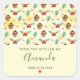 Etiquetas de cozinha com um padrão fofo com cones de pínus e holly em um fundo de aquarela amarela com pequenos círculos brancos espalhados ao redor.