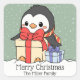 Adesivo Quadrado Pinguim bonito com presentes de Natal na neve