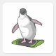 Adesivo Quadrado Pinguim como Snowboarder com Snowboard