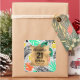 Faça seus próprios autocolantes personalizados mostrando seu texto em um quadrado de folha de alumínio dourada sobre pontos pretos e padrão colorido de impressão de plantas tropicais. Todo texto e fontes podem ser alterados para qualquer evento. MUITOS ESTILOS para escolher em nossa loja.