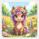 Adesivo Quadrado Pôneo bonito com Flores