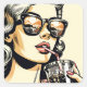Adesivo Quadrado Pop Art Comic Book Bonito Mulher Bebendo Soda