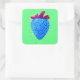 Morango azul brilhante sobre fundo verde no estilo Pop art. Para amante de Arte Contemporânea e Pop.