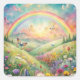 Adesivo Quadrado Prado com Flores e Borboletas e Arco-íris