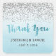 Obrigado, colantes com design de cintilação prateada suja e fundo azul-água azul-obscuro.