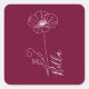 Adesivo Quadrado Presente de Flor de Nascimento de Agosto Poppy par