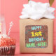 Este design de autocolante de aniversários divertido apresenta uma mensagem como "primeiro aniversario FELIZ, NOME AQUI!", onde o nome pode ser personalizado. O fundo apresenta uma representação de uma parede de tijolos constituída por alguns tijolos de cor castanha avermelhada. O texto de mensagem personalizável apresenta cores como azul, amarelo e verde, e tem uma aparência inspirada pela do grafite pintado. Os adesivos como estes poderiam talvez ser dados como presente de aniversário, ou talvez usados como decorações numa festa de aniversário para alguém que comemora o seu primeiro aniversário. [~Z0000273]
