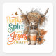 Design cor de cor, pacífica, com uma cena de outono/outono com café, flores de outono, folhas de outono e touro. O texto de inspiração colorido diz: "Pumpkin especiaria e Jesus Cristo". Esse design está disponível em uma grande variedade de produtos.
