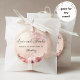 Adesivo de favor único e elegante em tom rosa dourado com detalhe floral e frase "Amor e Gratidão" em caligrafia moderna manuscrita. Fundo rosa dourado brilhante e floral rosa suave. Possibilidade de adicionar seu(s) nome(s) e qualquer evento ou data usando as caixas de texto fornecidas. Duas opções de tamanho para escolher.