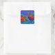 Adesivo Quadrado Rainbow Rooster & Hens, Blue Elétrico