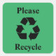 Adesivo Quadrado Reciclar com símbolo de Reciclagem em verde
