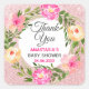 Adesivo Quadrado Rosa Dourado Pink Floral Wreath Obrigado Chá de fr