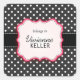 O preto com o fundo branco das bolinhas que caracteriza uma etiqueta cor-de-rosa brilhante do vintage escrita "pertence a" e nome do modelo em pias batismais diferentes (o estilo de pia batismal da mudança clicando na laranja a personaliza botão).