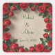 Estes adesivos de casamento apresentam um quadro de belas rosas vermelhas.