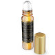 Etiqueta para garrafas de cilindro de perfume com um design de brilho dourado preto e fino.