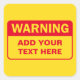 Rótulo de aviso vermelho e amarelo com texto personalizável.