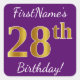 Adesivo Quadrado Roxo, Faux Dourado 28º Aniversário + Nome Personal