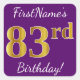 Adesivo Quadrado Roxo, Faux Dourado 83º Aniversário + Nome Personal