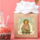 Fonte da imagem (RLS 03): Imagem antiga em cromolithografia com acentos de marrãs de Ruas. Bartolomeu o Apóstolo de Santos de Letras Vermelhas: Ser uma Série de Biografias dos Santos para os quais Coletas, Epistolas e Evangelhos Adequados são nomeados no Livro de Orações Comuns. Impresso por E. Kaufmann, Lahr, Baden, Alemanha, para a Sociedade para a Promoção do Conhecimento Cristão / S.P.C.K. (Londres, 1911), p. 55. Da biblioteca privada do designer. + Banquete: 24 de agosto + Texto está em vermelho-escuro (# 460000) que corresponde ao contorno da figura.