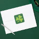 Um adesivo quadrado de Shamrock com um olhar moderno pintado à mão. O toque final perfeito para cartas, embalagens e cartas. Cores: verde claro e escuro