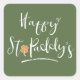 Um adesivo quadrado divertido para as Ruas. Dia de Patrick que apresenta a tipografia na moda da frase 'Ruas Felizes. Paddy's' em todas as cores da bandeira irlandesa; texto branco decorado com uma pedra de champanhe laranja num fundo verde. Procure ID336 para ver outros produtos com este design.