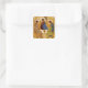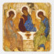 Antiquado Andrei Rublev trabalho de arte/ícone representando o Pai, o Filho e o Espírito Santo sentados numa mesa. As imagens parecem ter asas de anjo.