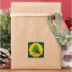 Dor festiva russa, palitos de presente com alça de alce e árvore de Natal, nome de família personalizado sublinhado com padrão de xadrez de búfalo verde e preto.