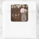 Adesivo Quadrado Rustic Wood Peony Floral Mason Jar |