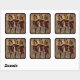 Um adesivo quadrado com uma imagem de três dançarinos franceses do câncer pintados em uma parede murmurmurante. Fronteira negra. Veja a mala de favor correspondente, caixa de favor, etiqueta de favor e rótulo. Veja toda a coleção do Cancan Sticker nos CONVITES | Seção Stickers & Labels