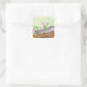 Uma aquarela de uma salamandra de cinza branca, escondida atrás de um pedaço de madeira enfeita esses adesivos!