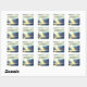 Um adesivo quadrado com uma escritura de citação inspiradora mostra uma bela fotografia natural do sol brilhando através das nuvens sobre a água, com céus azuis e montanhas escuras no fundo. Ele apresenta uma Bíblia encorajadora Verse Psalm 27:14, "Espere no LORD; tenha boa coragem, e ele vai reforçar seu coração; Espere, eu digo, no LORD!"