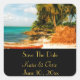 Adesivo Quadrado Salve a data Dreamy Tropical Beach com Rowboat