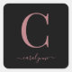 Adesivo Quadrado Script Elegante de Monograma Dourado de Rosa preto