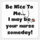 Enfermeira T-shirts, canecas, cartões, autocolantes, botões, bolsas e outros presentes amamentados com um estetoscópio e texto que diz "Seja gentil comigo.. Talvez um dia seja sua enfermeira!".