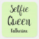 Divirta-se com esses adesivos. Eles são excelentes para alguém que ama fazer selifes. As palavras "Rainha Selfie" em escrita negra estão em fundo verde limão. Personalizar com um nome ou monograma sob as palavras "Selfie Queen". Divertido e fofo, esses adesivos podem ser usados em qualquer ocasião. Outras cores e produtos de fundo estão disponíveis.