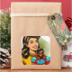 Adesivo Quadrado Senhora Retrô segurando um presente de aniversário