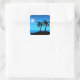 Sticker quadrado numa silhueta negra de uma ilha tropical, sob um céu azul profundo, com lua e estrelas