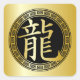 Celebrar o Ano do Dragão com este design atraente que apresenta um símbolo chinês de cor ouro (ou kanji japonês) para dragão rodeado por uma armação redonda de estilo oriental do ornamentado sobre um fundo preto e dourado. sgb01