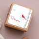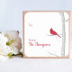 Esta design apresenta uma simples etiqueta minimalista do adesivo cardeal vermelho de inverno com uma cena botânica de cor aquática de Natal, de e para os ramos da moda, cor aquática botânica minimalista do estilo de vintage vermelha, escrita de caligrafia na moda, pinheiro sazonal da natureza da neve, madeira de pássaros branca, etiquetas de classe na moda, na moda elegante simplista de pássaros da natureza