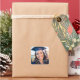 Este adesivo de festa de formatura de tendência apresenta um sofisticado script branco manuscrito sobre uma foto de cheio chic do seu formando. Personalize este adesivo de formando com o seu segundo grau, faculdade ou fotografia universitária atrás dos detalhes do seu mais velho.