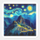 Machu Picchu é uma cidadela inca que se ergue nas montanhas dos Andes, no Peru, e um dos locais históricos mais icônicos do mundo. Esta bela design é a famosa imagem de Machu Picchu no estilo da Noite Estrelada de Vincent Van Gogh.