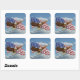 Um adesivo quadrado com uma imagem de uma bandeira americana ondulante e uma águia careca em voo contra um céu azul nublado. Ver vinheta de vinilo cortada por medida, confetti, bolsa de favor, caixa de favor, etiqueta de favor, sacos de presente, etiqueta e papel de embalagem. Veja toda a coleção de adesivos Patriotic 40s nos CONVITES | Seção Stickers & Labels