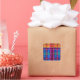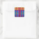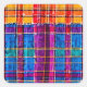 This sticker comes with a colorful plaid design in shades of. orange, purple, blue, and green.